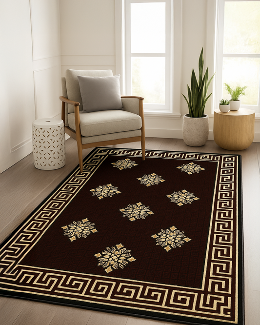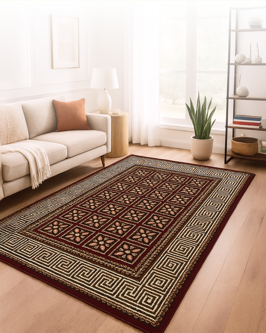 • Maroon & Beige Traditional Design Rug
