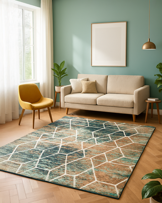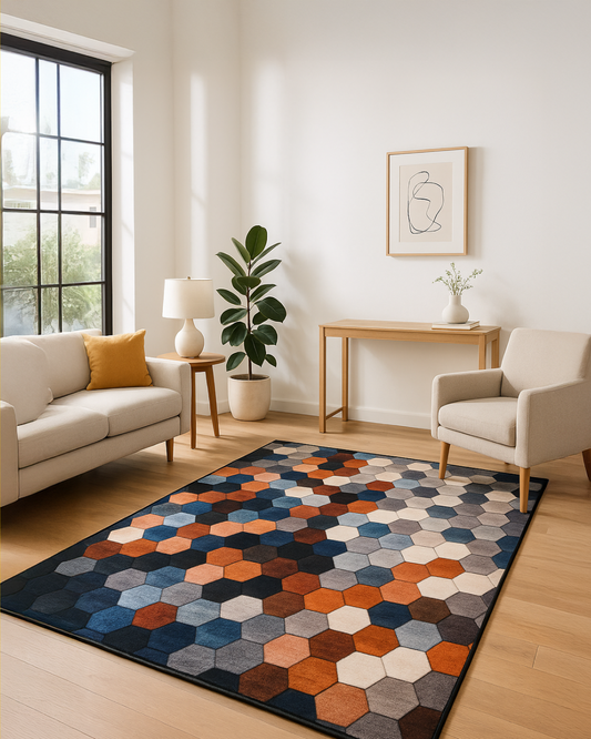 Multi Color Hexagon Print Rug