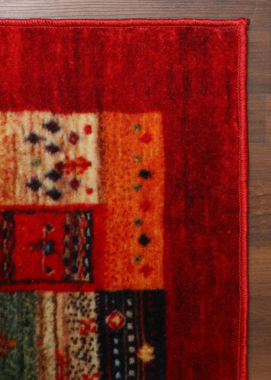 Red With Multi Color Medallion Print Rug
