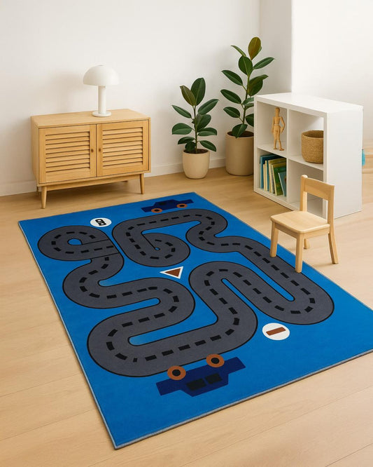 Multi Color Road & Car Drawing Print Rug