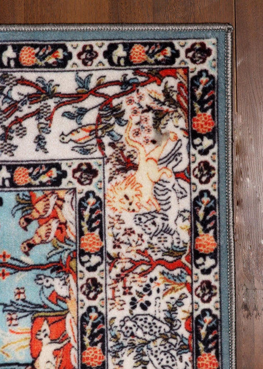 Vintage-Inspired Hunting Scene Rug – Multicolor with TPR Backing