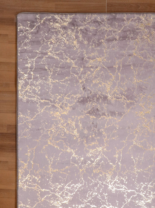 Purple And Golden Abstract Engraved Fancy Rug
