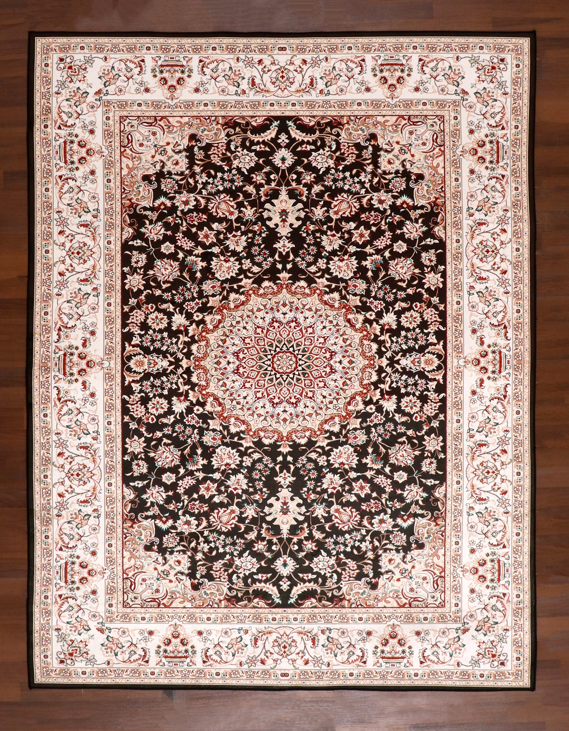 Intricate Artistry: High-definition floral patterns and a detailed Persian-inspired medallion.