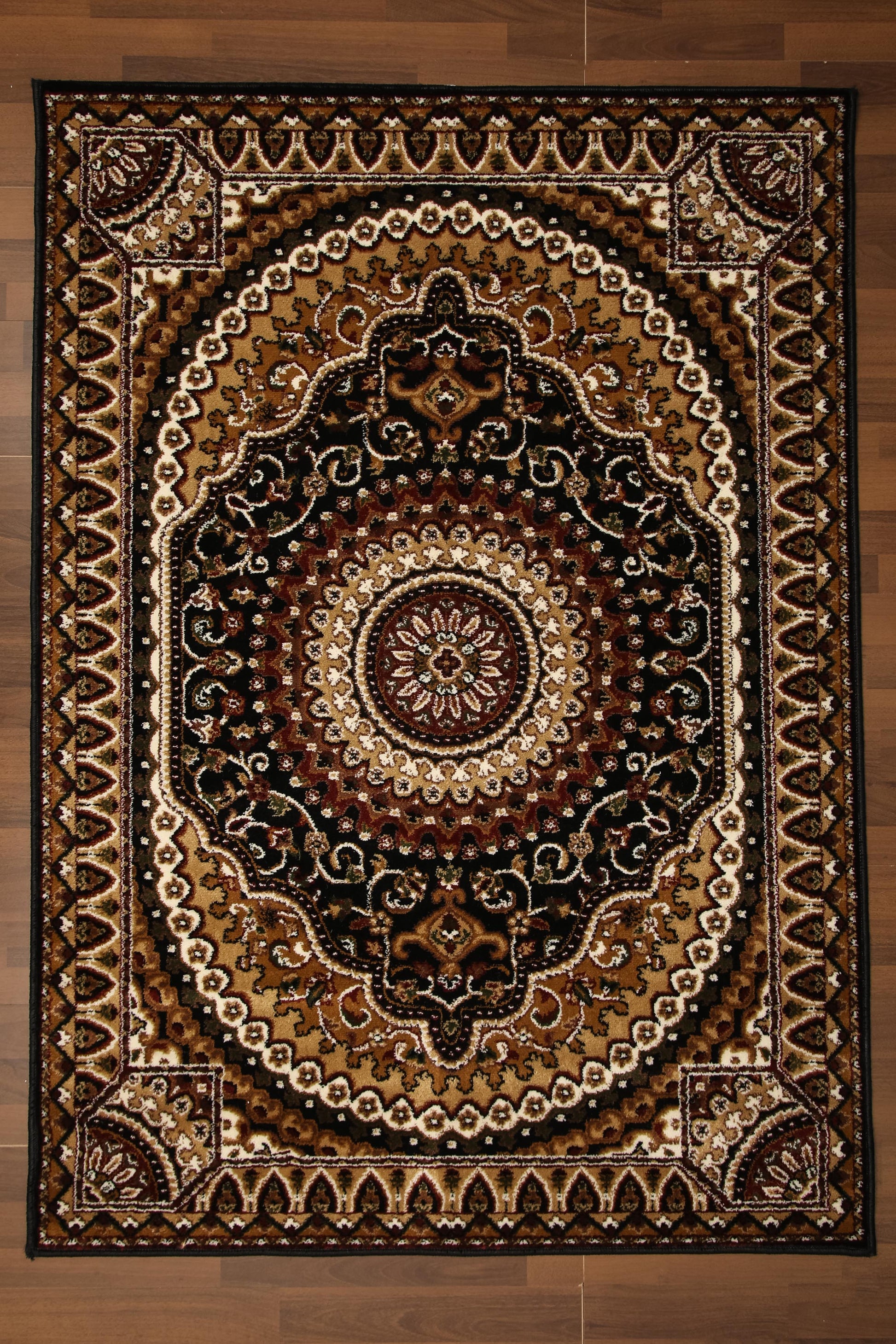Black & Beige Traditional Design Rug